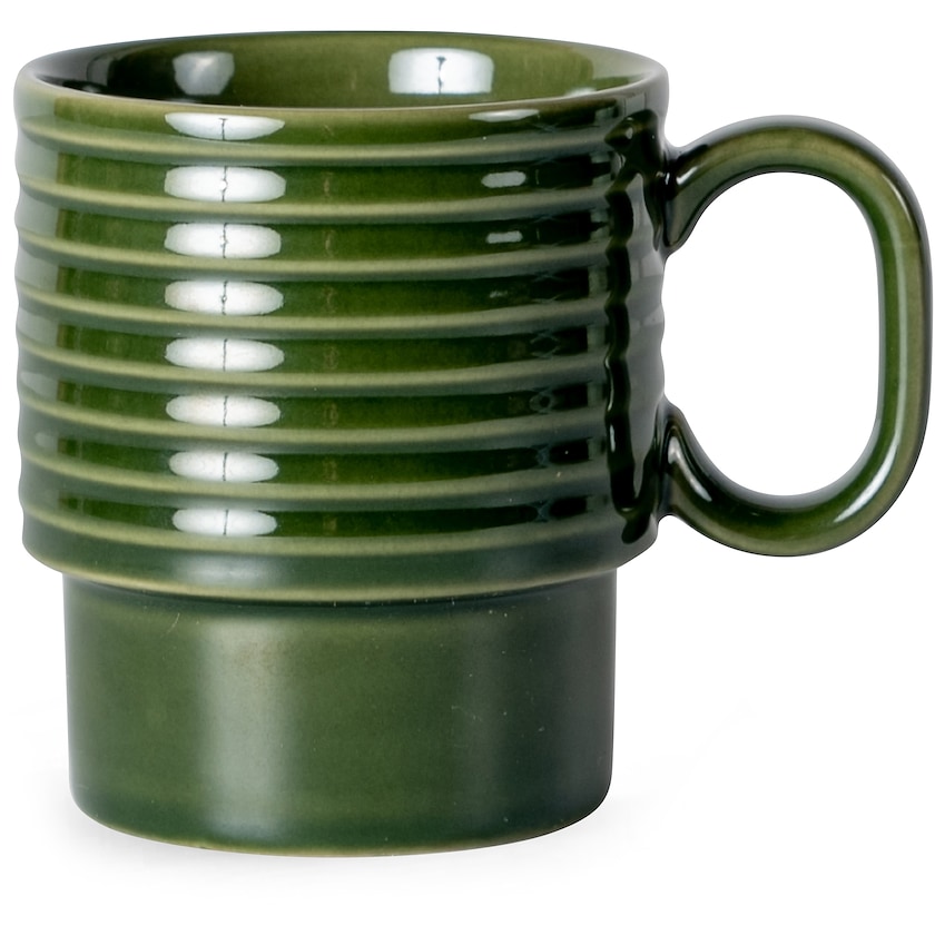 Ylellinen Sagaform-muki. Margot Barolon suunnittelema muki on saanut inspiraationsa 70-luvulta. Muki on pinottava ja kestää lämmittämisen mikroaaltouunissa sekä konepesun.