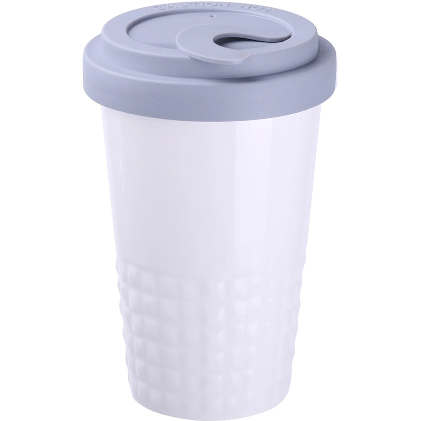 Tyylikäs take away-muki kumikannella, joka estää juoman läikkymisen. Posliinimukissa on kuviointi, jonka ansiosta se pysyy hyvin kädessä. Kaksinkertaisen rakenteensa ja tiiviin kantensa ansiosta se pitää juomasi lämpimänä pitkään.