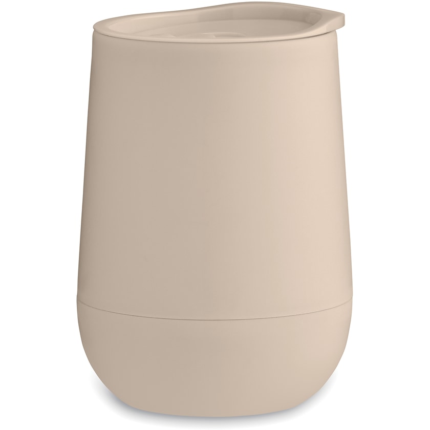 Edullinen takeaway-muki kaksinkertaisella seinällä. Kannessa on liukuva juomaputki.