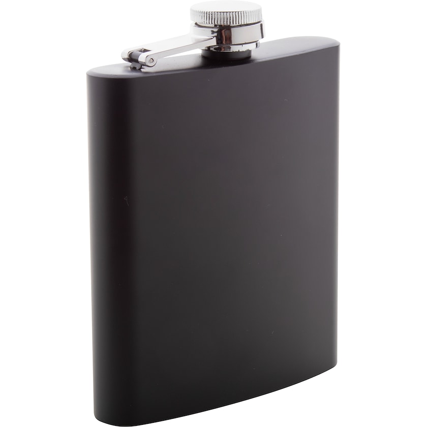 Musta taskumatti ruostumattomasta teräksestä. Frederick on tilavuudeltaan 20 cl. Merkkaus laserkaiverruksena.