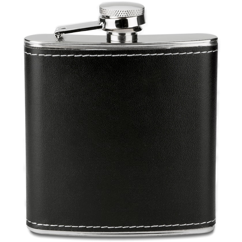 Tyylikäs taskumatti, metallia ja keinonahkaa. Tilavuus 18 cl. Painatus tehdään laserkaiverruksella keinonahkapintaan.