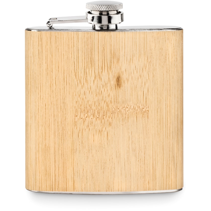 Teräksinen taskumatti, jonka ulkopinta on bambua. Elegantti taskumatti on luonnollisen kaunis. Merkkausmenetelmänä laserkaiverrus.