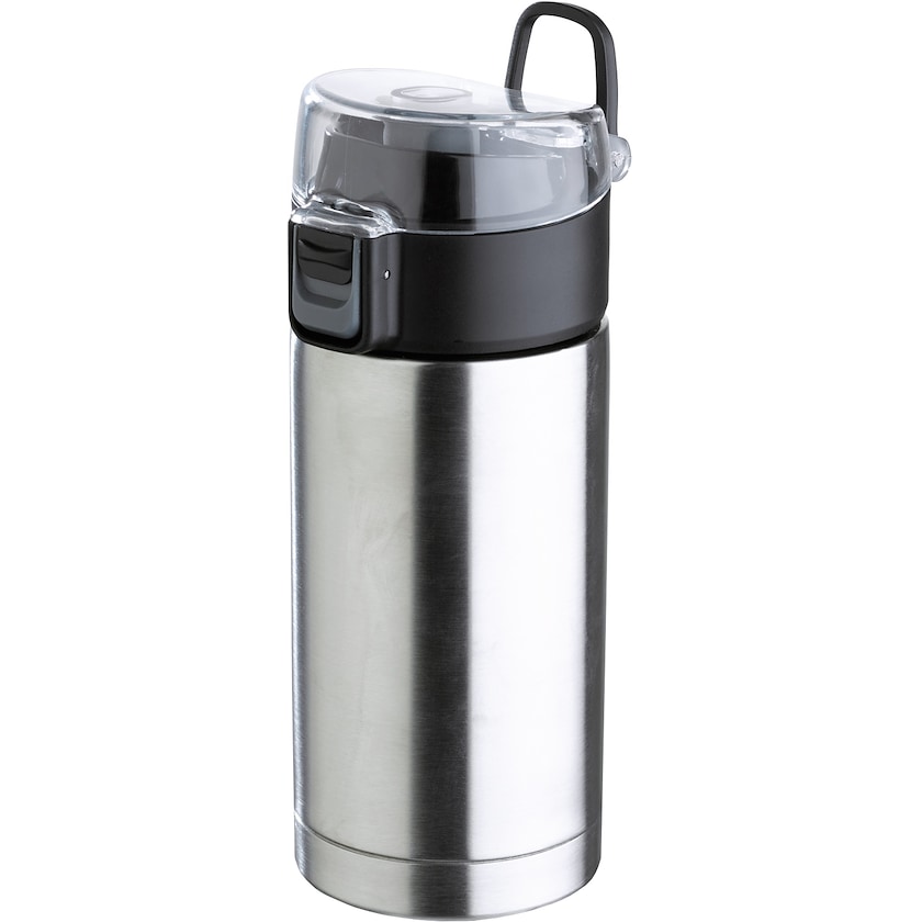 Korkealaatuinen termosmuki, joka on 100% tiivis ja vuotamaton. Mukin korkin saa auki vain nappia painamalla, mikä estää kaikki ohivuodot. 33 cl muki on valmistettu ruostumattomasta teräksestä.