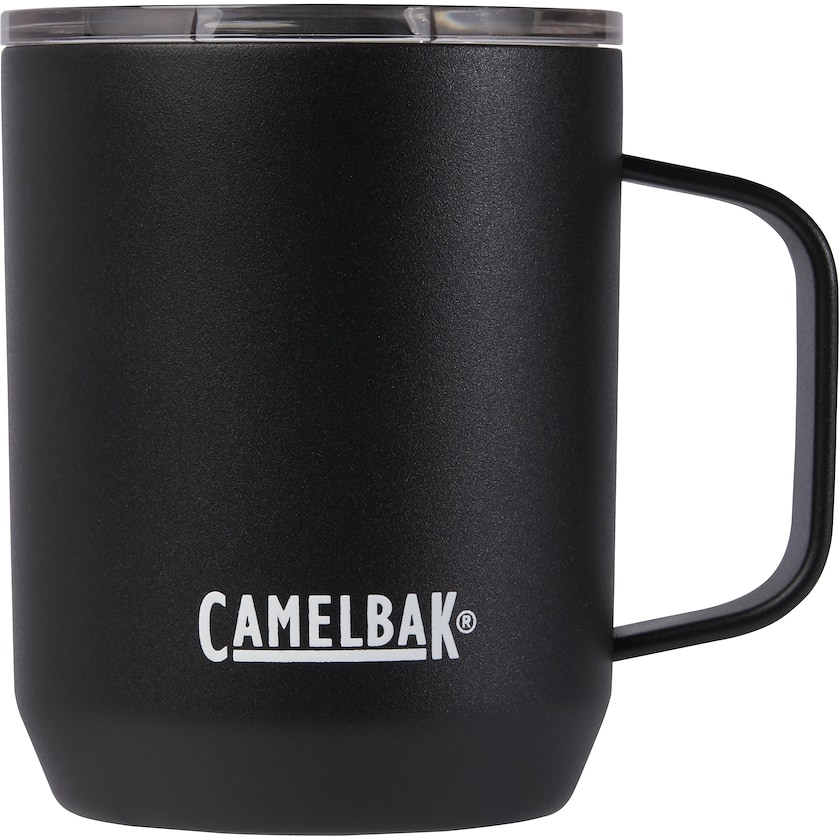 Termosmuki kahvalla merkiltä Camelbak. Muki on valmistettu ruostumattomasta teräksestä ja siinä on kaksoisseinämät, jotka ovat tyhjiöeristetty. Juoma pysyy kuumana neljä tuntia ja kylmänä kuusi tuntia. Kansi on vesitiivis. Pohjassa on silikonipinta, joten muki pysyy pystyssä tukevasti kaikilla pinnoilla.