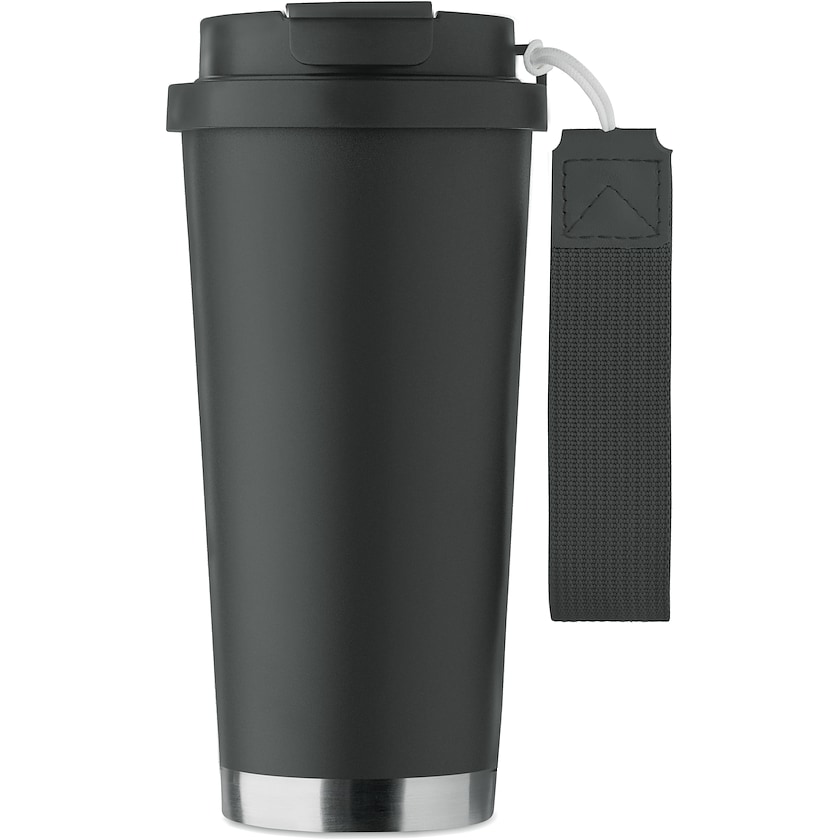 Iso termosmuki kierrätetystä ruostumattomasta teräksestä. Muki on kaksiseinäinen, mikä pitää juoman lämpimänä pidempään. Kansi on valmistettu polypropeenista ja siinä on 2-in-1-juomanokka. Vuotamaton.