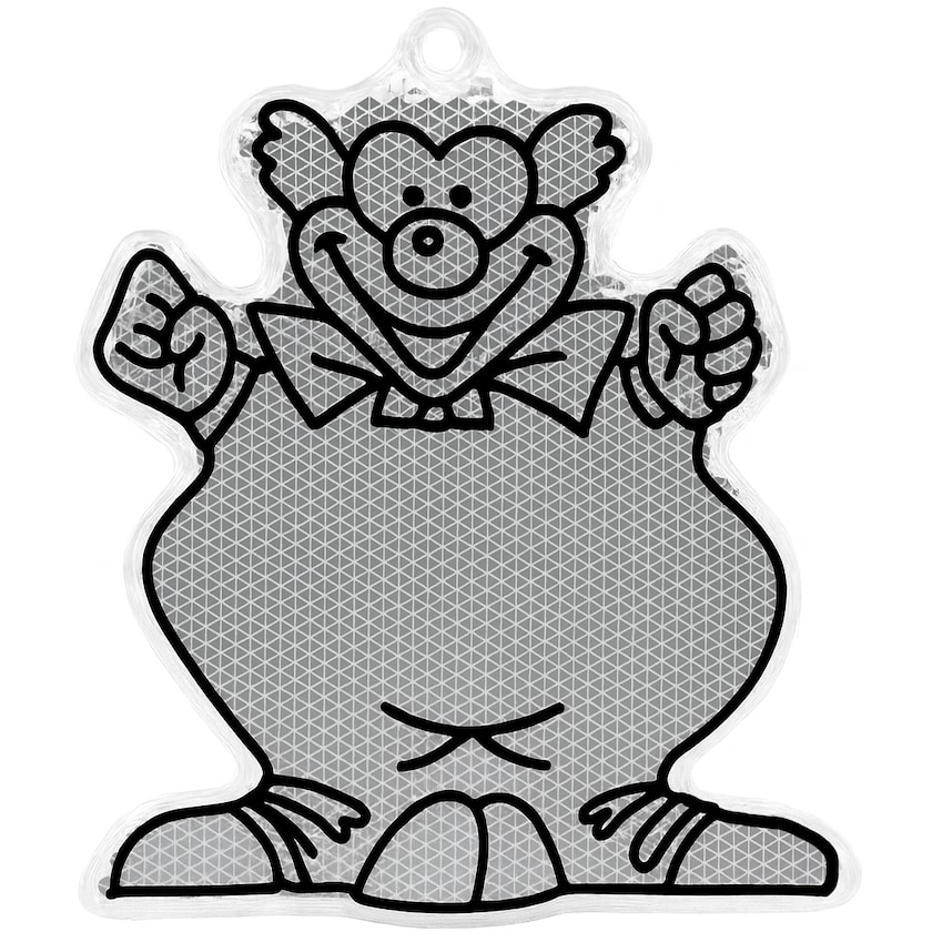 Hauska heijastin sirkuspellen muotoisena. Levy on aluksi täysin ilman pellen ääriviivoja. Painatus tulee valitsemillasi painoväreillä.
