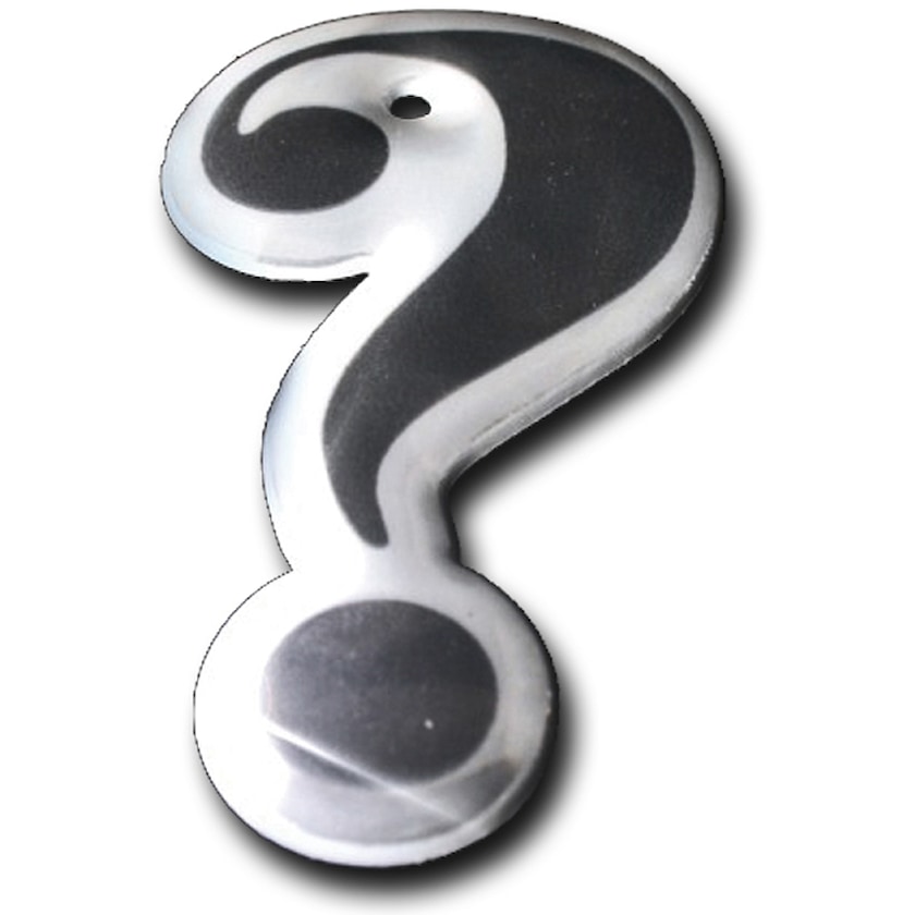 Kysymysmerkin muotoinen pehmoheijastin. Mukana joko metallilenkki tai hakaneula ja lanka. Heijastinmateriaali on EN13356:2001-vaatimusten mukainen. Painatus tehdään heijastinpinnan alle, jotta se ei vahingoita pintaa.