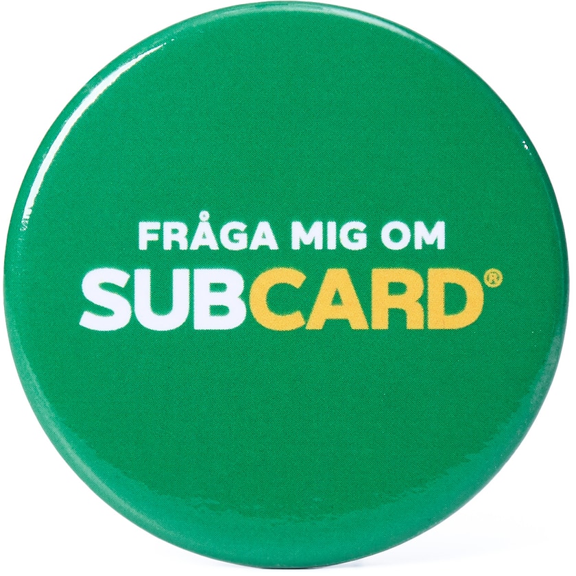 Pyöreä mainosnappi hakaneulakiinnityksellä. Klassinen ja edullinen mainostuote.