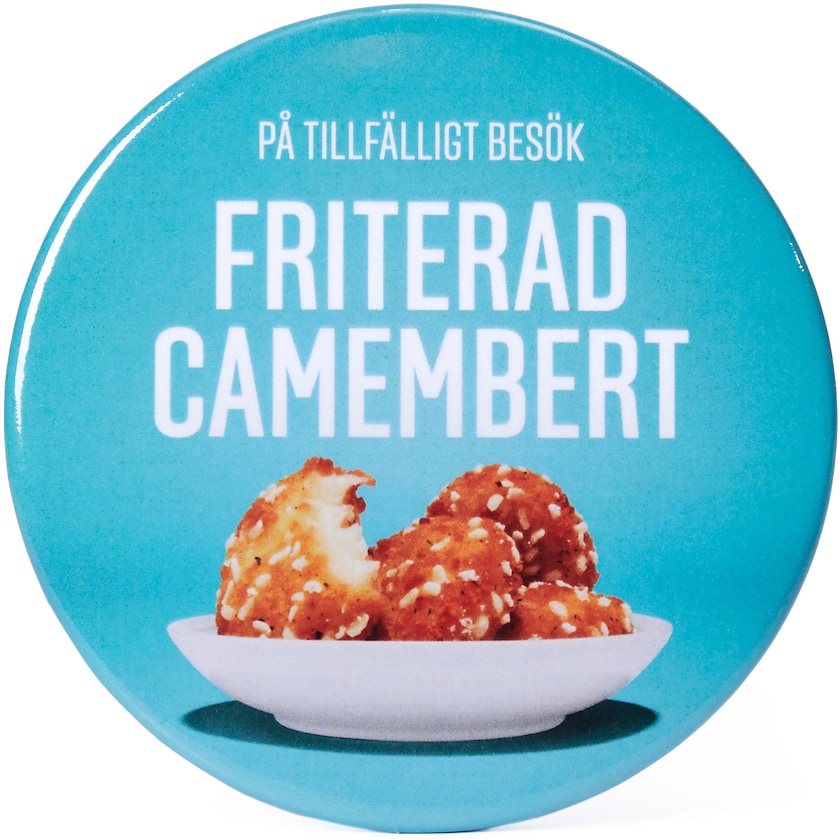 Iso mainospinssi on halkaisijaltaan 88 mm. Takana hakaneula.