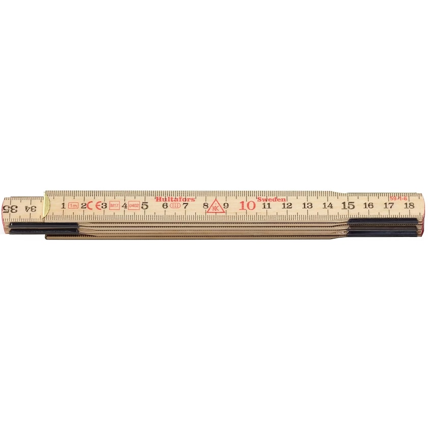 Hultaforsin ensiluokkainen nivelmitta 1 metrin versiona. Mitta on valmistettu hieskoivusta, ja sen nivelet ovat Ruotsissa valmistettua terästä. Mitassa on mustat cm-merkinnät ja punaiset dm-merkinnät.