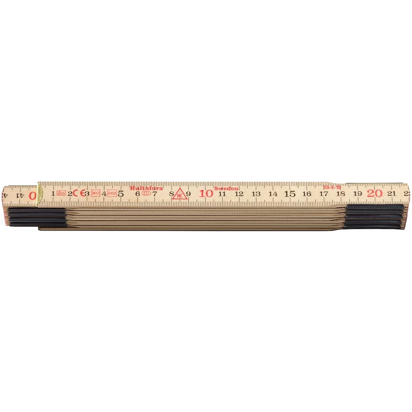 Hultaforsin klassikko, pakollinen jokaisen käsityöläisen kassissa. Perinteisesti valmistettu hieskoivusta, nivelet ruotsalaisesta teräksestä, tämä mahdollistaa ohuet neuleet ja sujuvan nivelmitan. Metrinen luokinta mustalla molemmin puolin ja punaisella desimetriluvut.