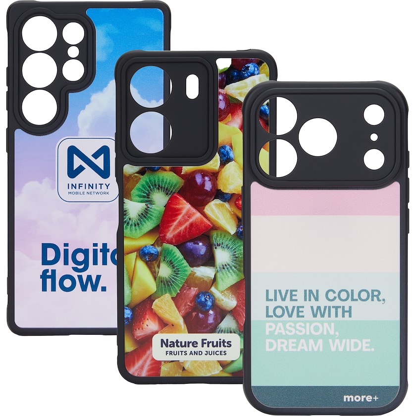 Puhelinkuori, joka on saatavana Apple-, Samsung- ja Xiaomi-puhelimille. Suojaa yrityksen puhelimet ja toimii samalla mainoksena. Valittavana on useita eri malleja. Koko etupuolelle tehdään digipainatus toiveidesi mukaan, ja voit itse valita kiiltävän tai mattapintaisen viimeistelyn. Kaikkien tilattujen puhelinkuorien on oltava samaa mallia.