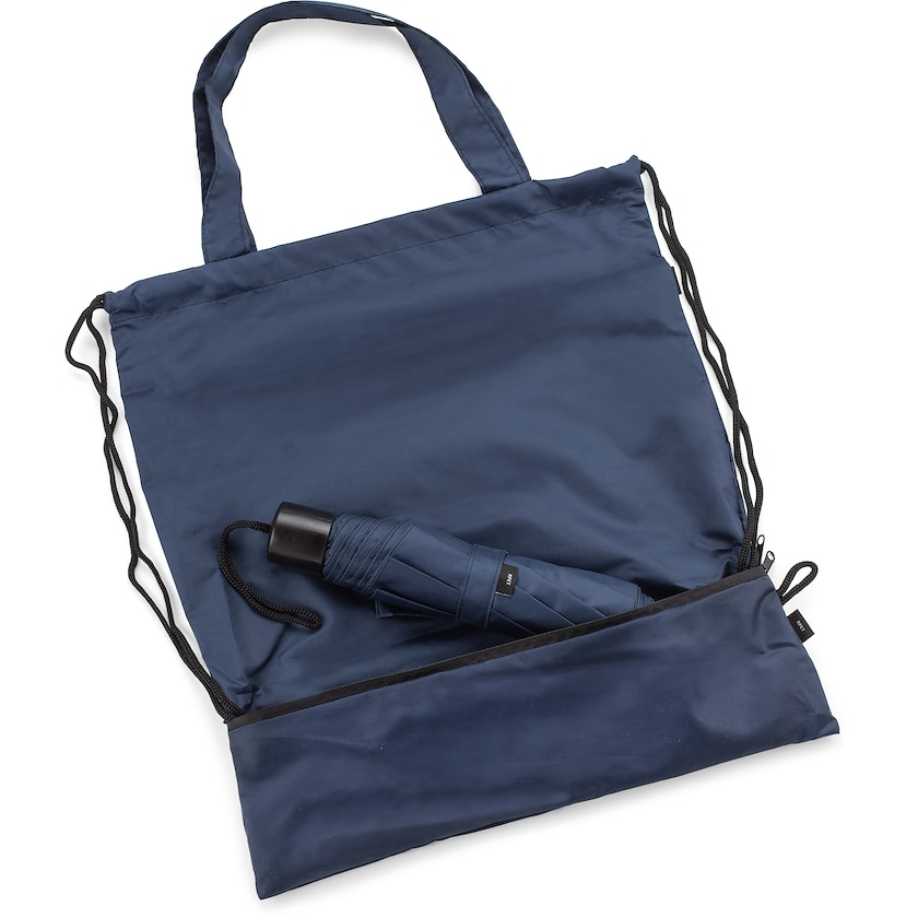 Ympäristöystävällinen setti, joka sisältää kangaskassin ja sateenvarjon. Molemmat tuotteet on valmistettu rPETistä, eli kierrätetyistä PET-muovipulloista. Kassin alaosassa on säilytystasku sateenvarjolle. Kangaskassi on kokoontaitettava, joten se vie vain vähän tilaa. Painatushinta koskee joko sateenvarjon tai kassin painatusta. Kassin mitat ovat 41 x 37 cm ja sen painoraja on 3 kg. Sateenvarjossa on manuaalinen avausmekanismi.