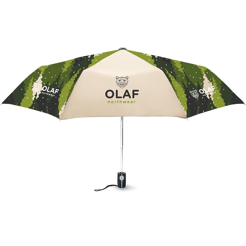 Ympäristöystävällinen ja kompakti sateenvarjo kankaalla, jonka voit täysin suunnitella itse. Davis on kolmiosainen ja erittäin korkealaatuinen. Rimat ovat lasikuitua. Sateenvarjo avautuu ja sulkeutuu automaattisesti. Koko kangas painatetaan toiveidesi mukaisesti ja ommellaan sitten sateenvarjon rakenteeseen. Toimitetaan sateenvarjon designiin vastaavan kotelon kanssa. Painatushinta koskee painatusta vain sateenvarjon ulkopinnalle.