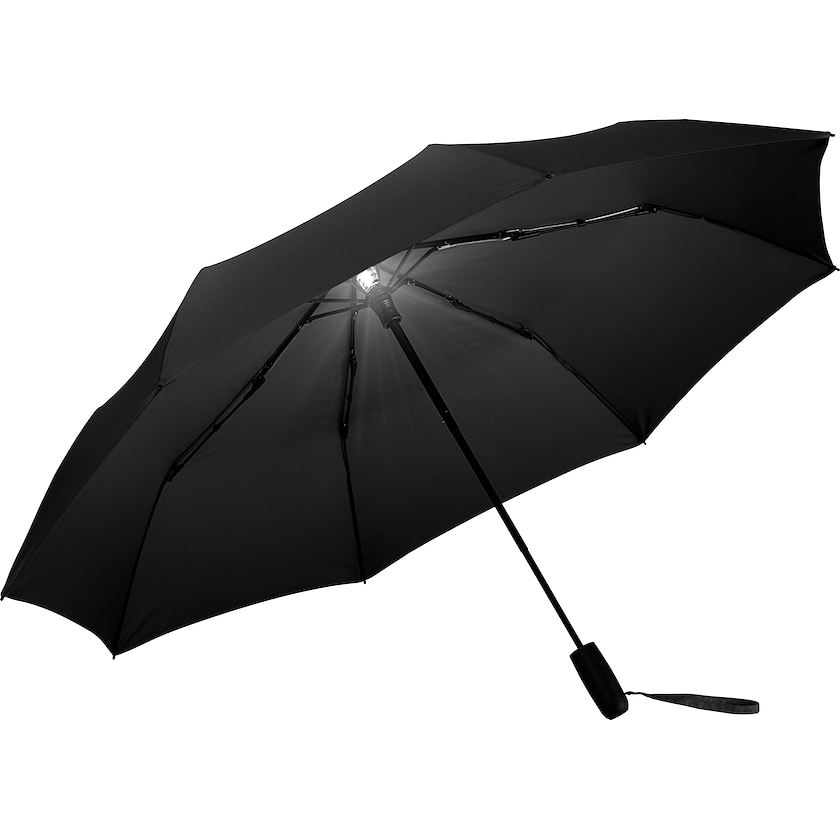 Suuri ja kompakti sateenvarjo, jossa sisällä LED-lamppu. Täydellinen esimerkiksi, kun etsit jotain laukustasi tai vain ajattelet, että on mukava kävellä valaistuna. LED-lamppu voidaan sammuttaa ja sytyttää halutulla tavalla. Sateenvarjo on vahvistettu, jotta se kestää hieman voimakkaampiakin tuulenpuuskia.