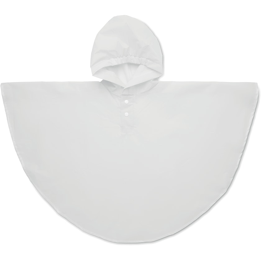 Sadeponcho lapsille. Sopii pienille 2-5-vuotiaille lapsille. Ponchossa on huppu ja napit.