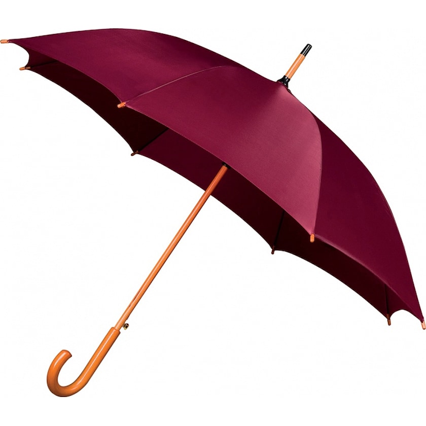 Kustomoitava automaattinen sateenvarjo edulliseen hintaan! Sateenvarjossa on elegantti puinen koukkukahva ja se on saatavilla monissa eri väreissä.
