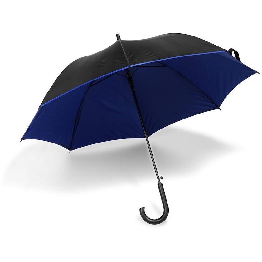 Värikäs, automaattinen sateenvarjo muovikahvalla.