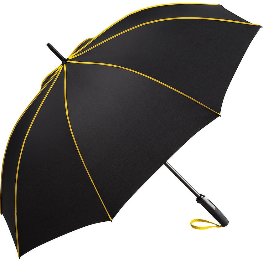 Laadukas sateenvarjo, jonka persoonallinen design erottuu joukosta. Myrskynkestävässä sateenvarjossa on lasikuiturimat ja terästanko. Kankaassa on tyylikkäät tehostevärit rimojen kohdalla. Sateenvarjo aukeaa napin painalluksella.