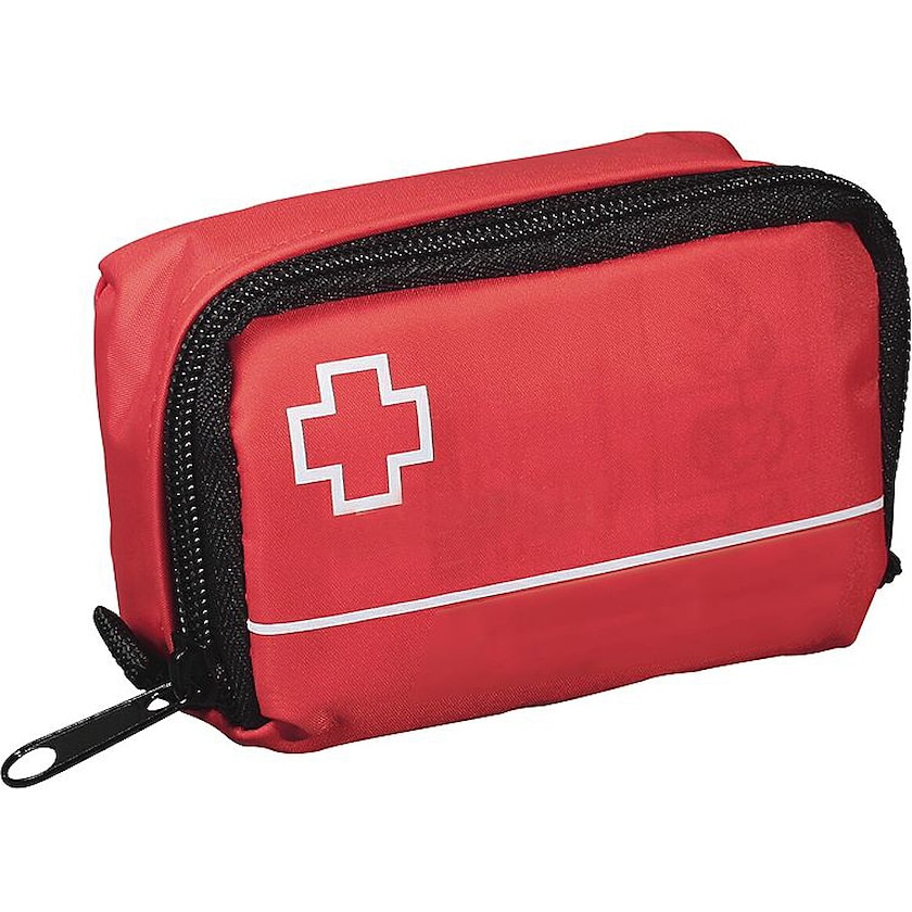 1 suojamaski suusta-suuhun tekohengitystä varten, pieni siderulla (5x 450 cm), kolmioside, 1 kosteuspyyhe, leveä laastari (7 x 20 cm), saippuaservetti, pad (5 x 5 cm) , 5 laastaria, hakaneulat, sakset, teippiä