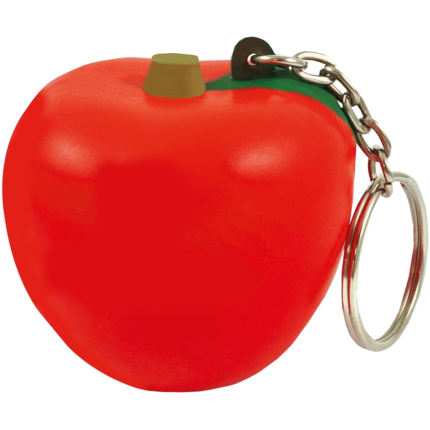 Avaimenperällä varustettu omenan muotoinen stressipallo. Painatus on huippulaatuista, mikä tarkoittaa, että painatus säilyy myös pitkän vaivaamisen jälkeen.