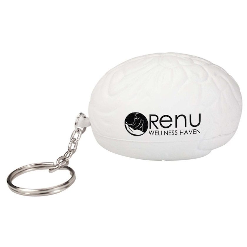 Aivojen muotoinen stressipallo. Stressipallo on varustettu avainrenkaalla, joten se voidaan kiinnittää avainnippuun. Painatus on huippuluokkaa.