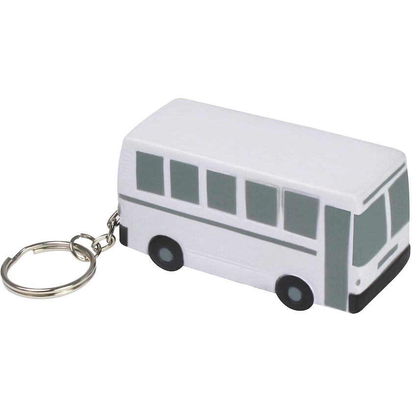 Bussin muotoinen stressipallo avaimenperällä. Painatuksen laatu on erinomainen, joten se pysyy hyvin myös pitkäaikaisessa käytössä.