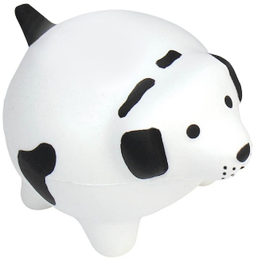 Pullean koiran muotoinen stressipallo. Painatus säilyttää käytössä huippulaatunsa, joten se säilyy stressipallon koko käyttöiän ajan.