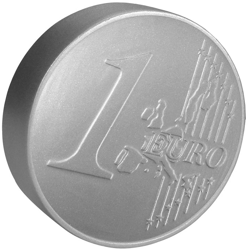 Stressipallo 1 Euron kolikon muodossa. Painatus tehdään kolikon kääntöpuolelle.