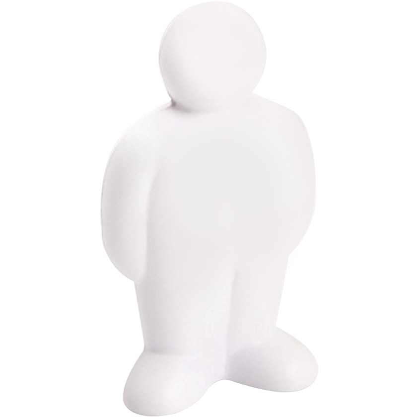Valkoinen stressipallo, joka on suunniteltu ihmisen muotoiseksi. Stressipallo, joka sopii useimmille yrityksille. Painatus on erittäin korkealaatuista.