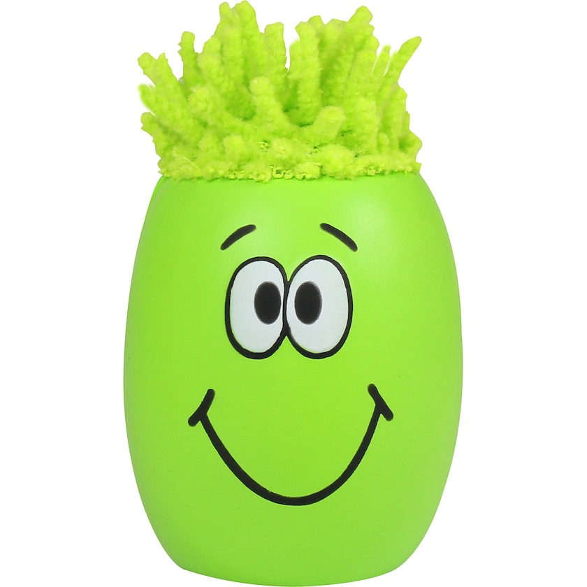 Stressipallo, jolla voi puhdistaa näytön. Näppärä tuote, jolla on kaksi käyttötarkoitusta. Stressipallon toisella puolella on hassu naama ja toisella puolella tilaa sinun painatuksellesi.