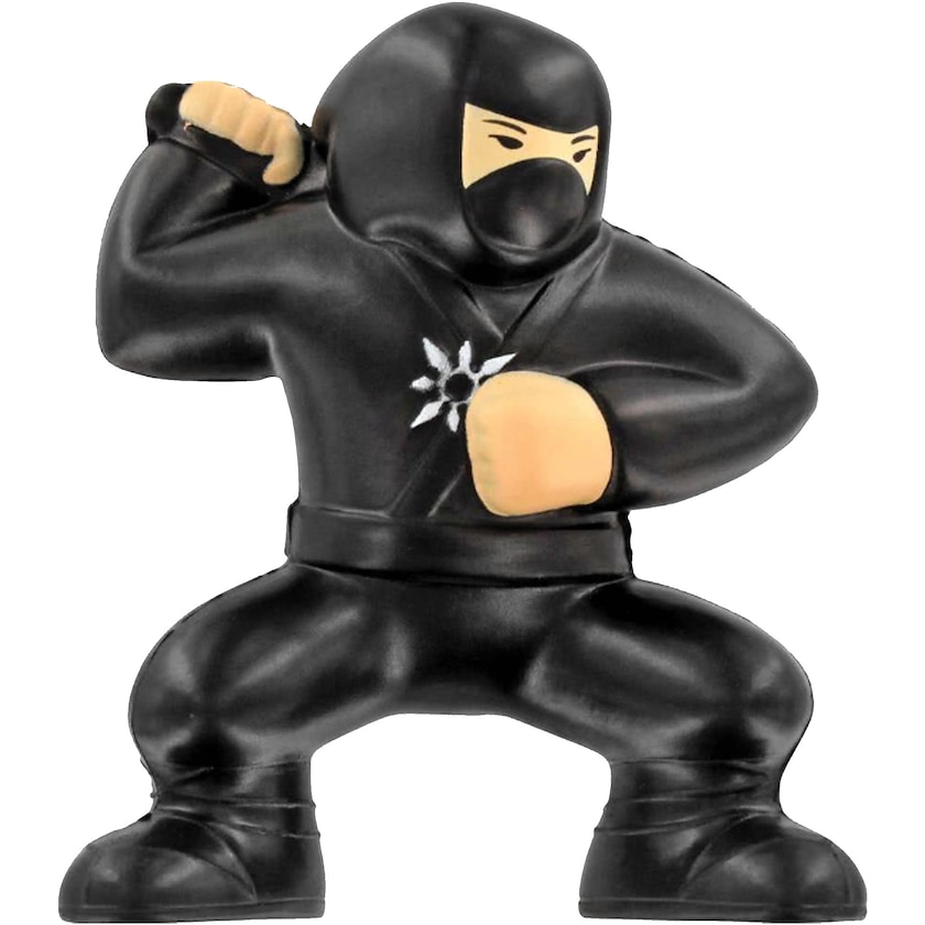 Mustapukuisen ninjan muotoinen stressipallo. Painatus on erittäin laadukas ja pysyy hyvin, vaikka käyttö olisi intensiivistä ja pitkäaikaista.