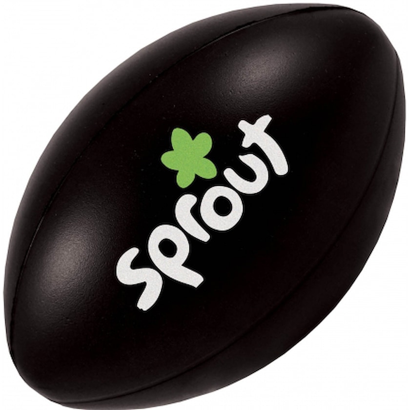 Rugbypallon muotoinen stressipallo. Saatavilla eri väreissä. Axon on stressipallojen painattamisen asiantuntija, joten voit olla varma, että painatus kestää pallossa kauan.