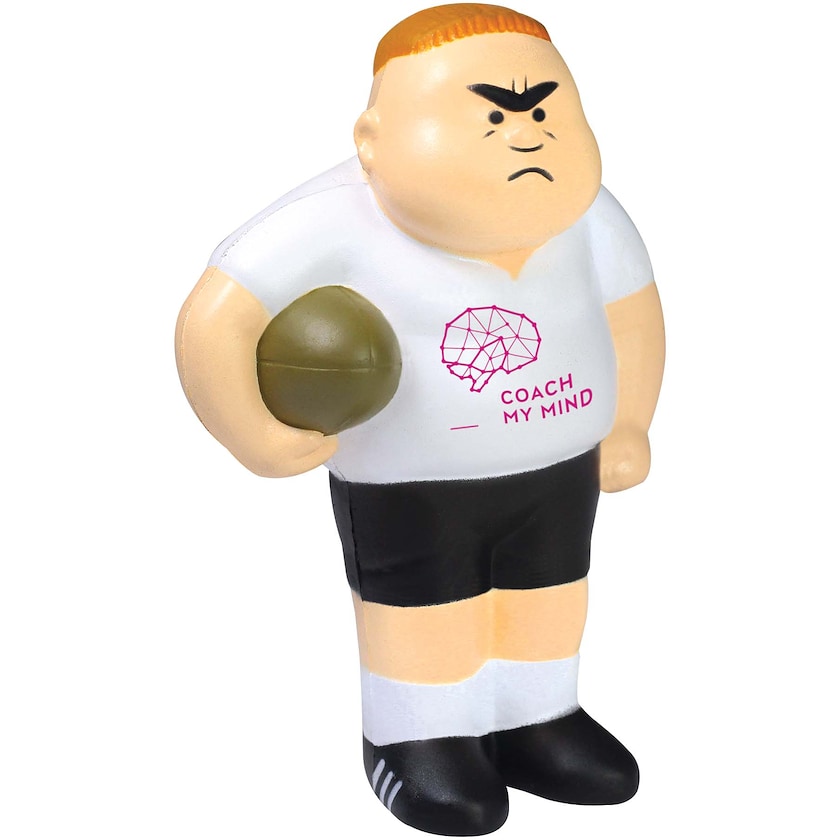 Rugbypelaajan muotoinen stressipallo painatuksella. Rakastatpa rugbyä tai vain urheilua, tämä on täydellinen stressipallo sinulle. Axonin stressipallojen painatuksen laatu on lyömätön.