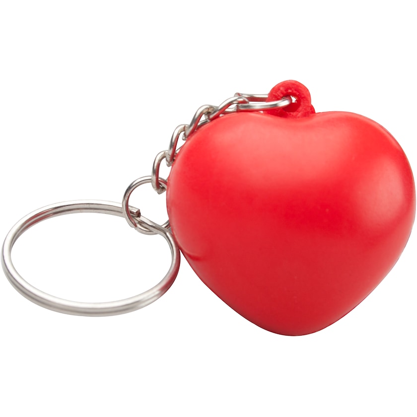 Pieni sydämenmuotoinen stressipallo avaimenperänä. Vain 1-väripainatus.