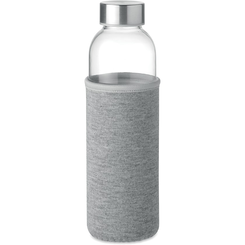 Lasinen juomapullo käytännöllisellä neopreenisuojuksella. 50 cl pullossa on elegantti metallikorkki. Painatus tehdään pulloa suojaavaan neopreenipussiin. Lasinen urheilupullo on oiva vaihtoehto sinulle, joka etsit ylellistä juomapulloa liikelahjaksi!