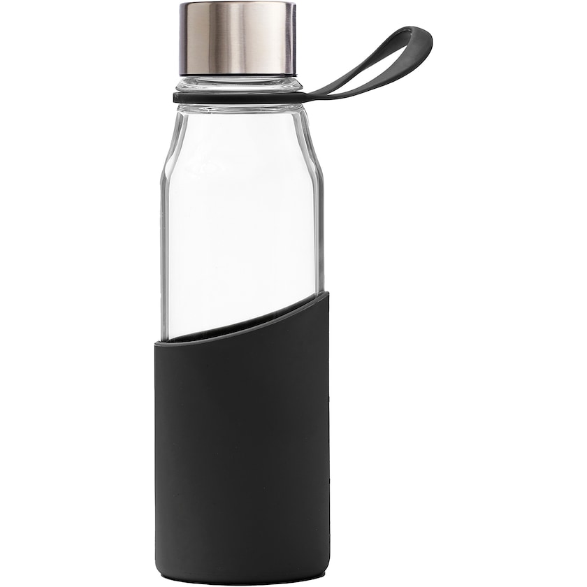 Kaunis lasipullo silikonipohjalla. Lasi on borosilikaattilasia ja erittäin kestävä. Pullon silikonipohja tarjoaa lisää iskunkestävyyttä ja erinomaisen pidon. Astianpesukoneenkestävä.