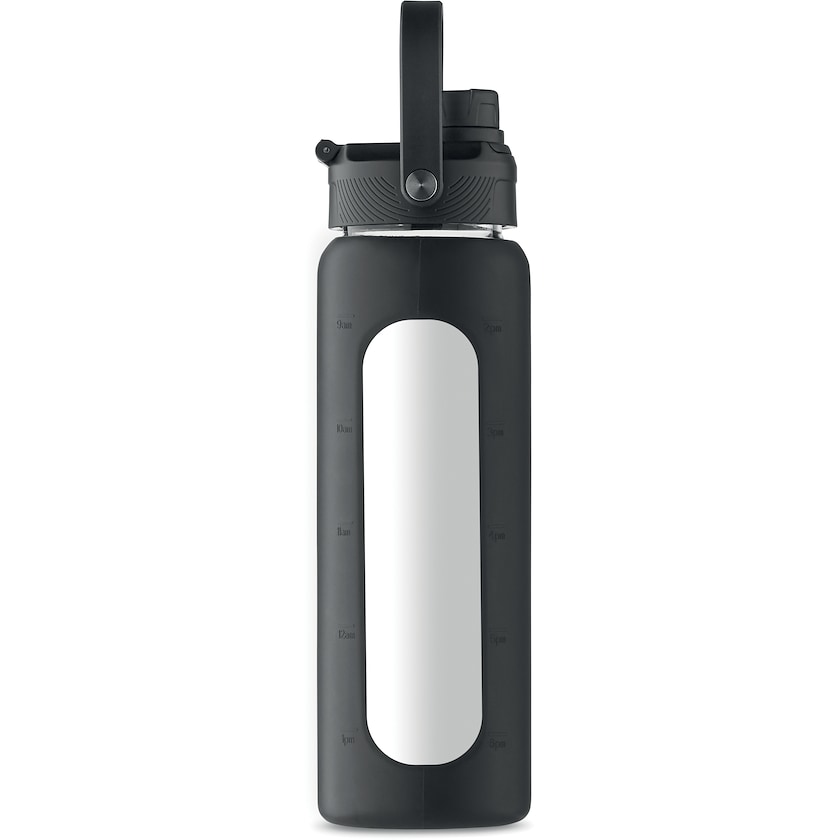 Ylellinen vesipullo kestävästä borosilikaattilasista ja silikonista. Vesitiivis. Korkissa on kantokahva.