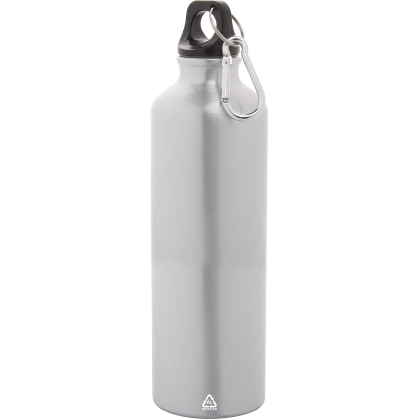 Kierrätetystä alumiinista valmistettu 75 cl vesipullo. Kannessa on karabiinihaka. Merkintä voidaan tehdä joko painatuksella tai laserkaiverruksella.