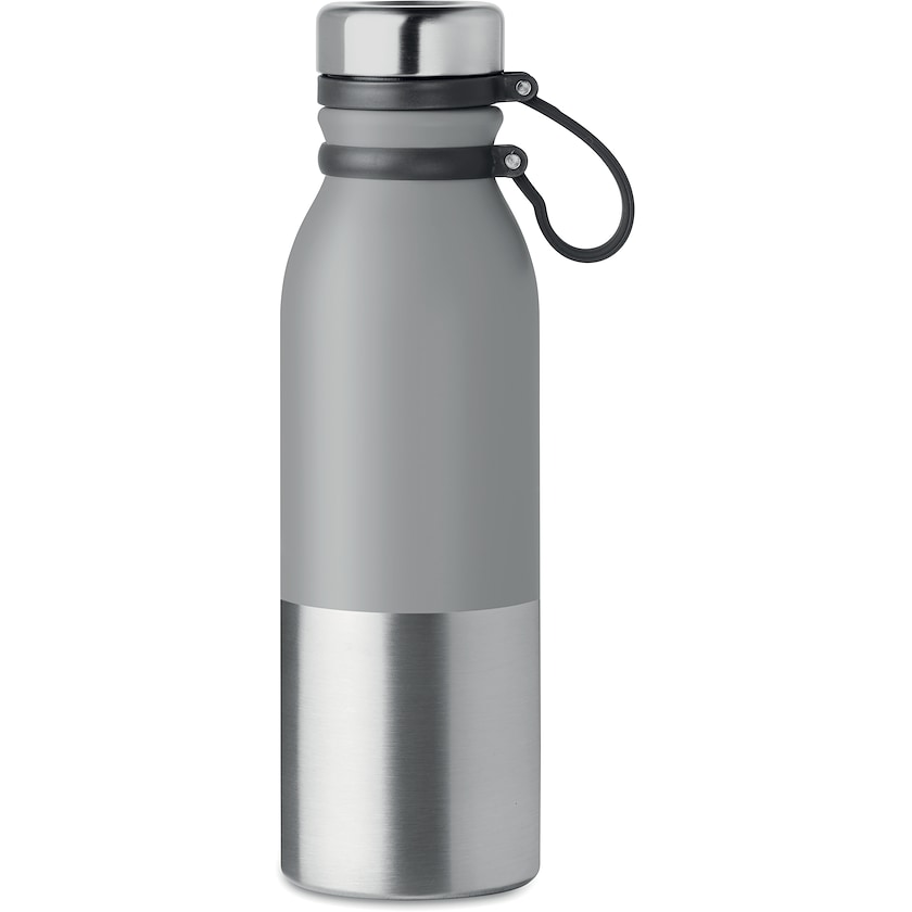 Teräspullo, jonka yläosa on värillinen. Geraldissa on silikonen kantolenkki. Pullo on täysin tiivis. Jos painatus tehdään vain yhdellä värillä, painoala on kokonaiset 190 x 65 mm.