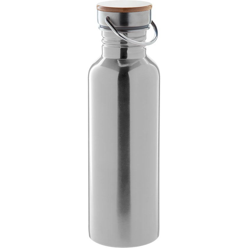 Vesipullo ruostumattomasta teräksestä. Korkissa kantokahva. Korkin yläosa on kaunista bambua. Merkkaus joko painatuksena tai laserkaiverruksena.