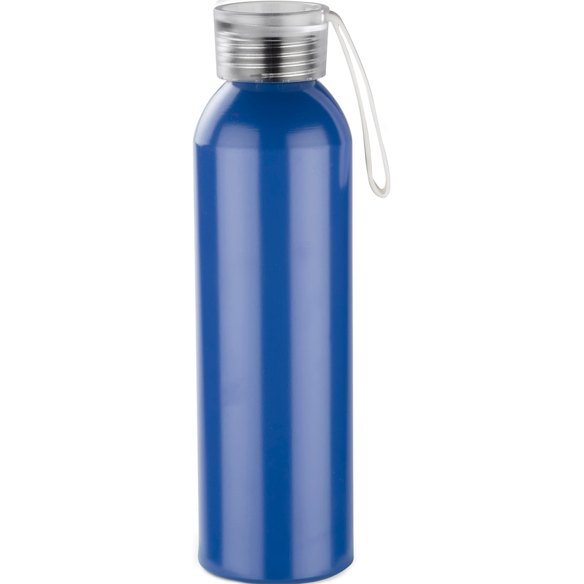 Kevyt alumiininen juomapullo. Pullon korkki on muovinen, ja siinä on kätevä kuminen ripustuslenkki. Tuote on pakattu valkoiseen pahvilaatikkoon.
