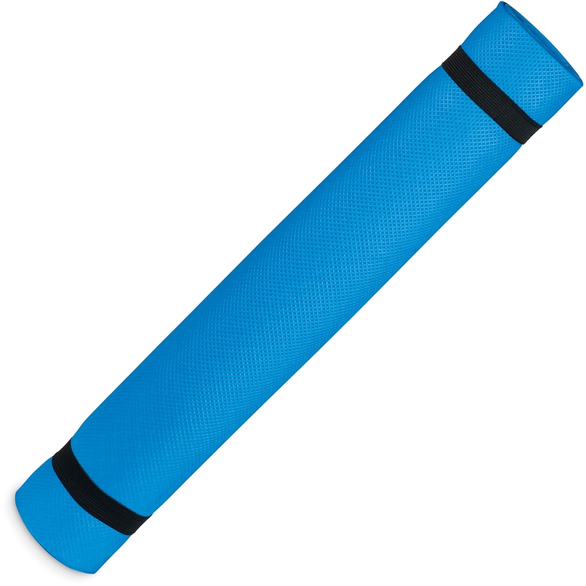 Joogamatto säilytyspussissa. Maton materiaalina on kestävä EVA-muovi. Painatuksen saa säilytyspussin ylä- tai alaosaan.
