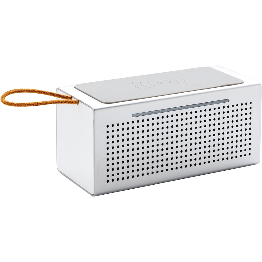 Kaiutin, joka toimii myös langattomana laturina älypuhelimelle. Yhdellä latauksella saat n. 8 tuntia soittoaikaa. Jos haluat ladata puhelimen samalla kun musiikin toisto on päällä, laite tarvitsee sähkövirtaa. Langaton lataus toimii uusimmissa QI-tuetuissa älypuhelimissa. Rekisteröity design®.