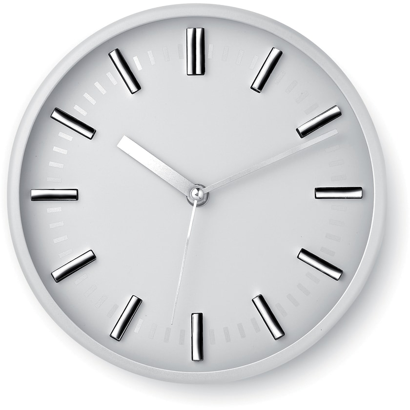 Moderni, pyöreä, hopeanvärinen seinäkello. Toimii yhdellä AA-paristolla (ei mukana).