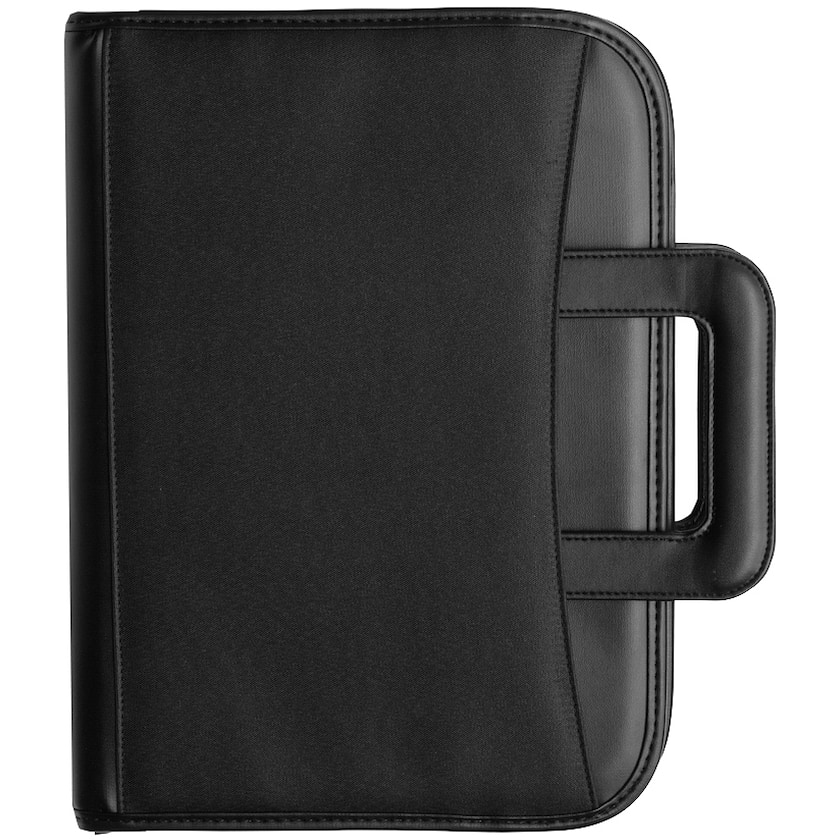 Kokouskansio, jossa on integroidut kantokahvat. Mukana kirjoitusvihko.