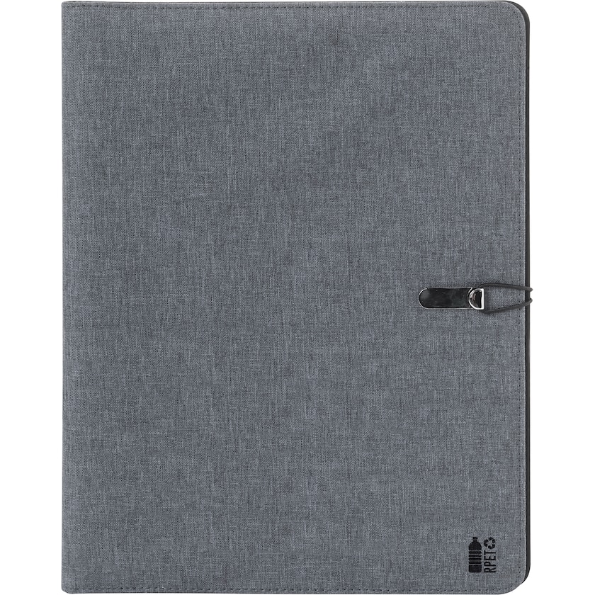 Ympäristöystävällinen kokouskansio A4-koossa. Sisällä useita taskuja ja kirjoituslehtiö 25 viivoitetulla sivulla. Itse kansio on valmistettu ympäristöystävällisestä rPET-materiaalista.