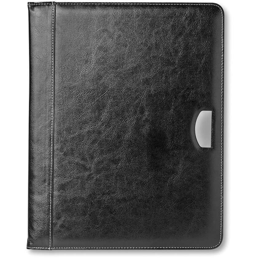 A4-kokouskansio tekonahasta. Mukana 20-sivuinen lehtiö. Merkkaus tehdään joko painatuksena tekonahkaan tai laserkaiverruksena metallimerkkiin.