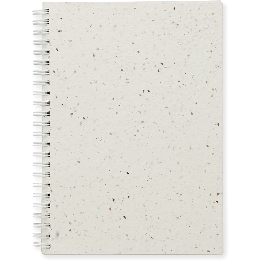 Spiraalinen muistikirja siemenpaperista. Sisältö koostuu 100 vuoratusta kierrätyspaperisivusta. Siemenpaperi voidaan istuttaa, jolloin se tuottaa sekakukkia.