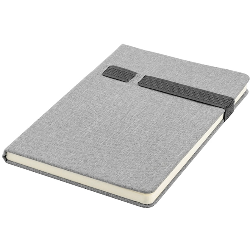 Muistikirja, jonka kannessa on kuminauhapidikkeet esim. kynälle ja matkapuhelimelle. Kannessa on pellavaa muistuttava kangaspinta. Sisältää 80 viivoitettua sivua.